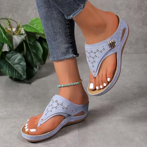 Orthopedic Sandals for Women, Women Summer Dressy Comfortable Sandals Arch Support Wedge Sandals Non Slip Flip Flops Sandals(Blue-1,6) 6