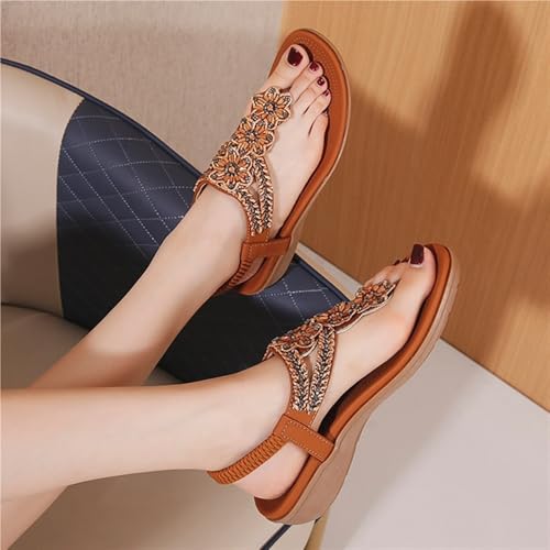 Women's Pinch Toe Sandals Rhinestone Beaded Bohemian Dress Flip-Flop Gladiator Shoes Comfort Open Toe Elastic Strap Sandals 6