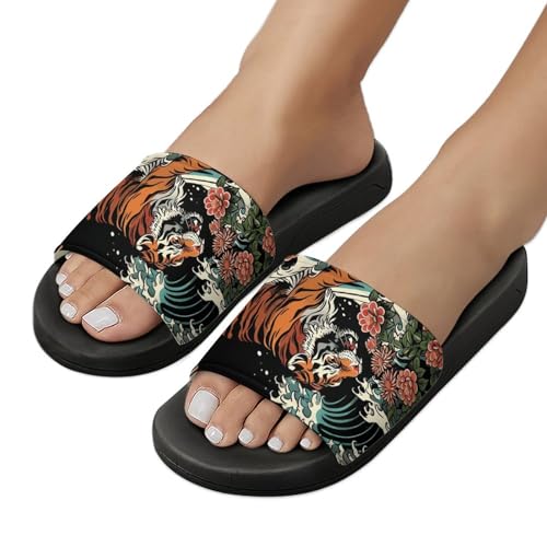 Tiger Waves Flowers Non Slip Slides Sandals for Women Men Quick Drying Shower Shoes for Bathroom Pool Beach 7