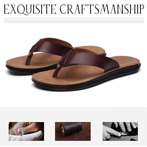 Men's Leather Flat Flip Flops Lightweight Comfortable Open Toe Anti-Slip Soft Platform Slip On Thong Sandals for Summer Casual Walking Beach Slides 6