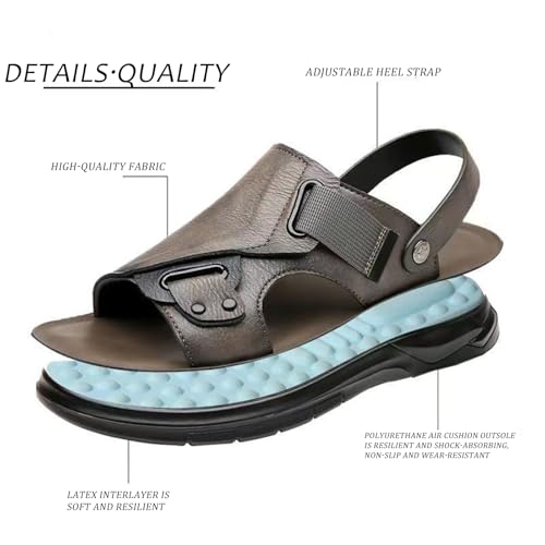 HOT ! Men'S Pu Leather Flat Sandals With Adjustable Dual-Use Ankle Straps Comfortable Breathable Open-Toe Slip-On Sandals, Soft Casual Sliding Slippers