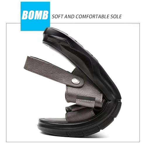 More information about Men'S Pu Leather Flat Sandals With Adjustable Dual-Use Ankle Straps Comfortable Breathable Open-Toe Slip-On Sandals, Soft Casual Sliding Slippers