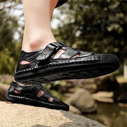 GEXECEUSS Sandals for Men Closed Toe Leather Sport Sandals Fisherman Sandals Outdoor Casual Walking Sandals Summer Water Shoes Beach Wading Shoes 5