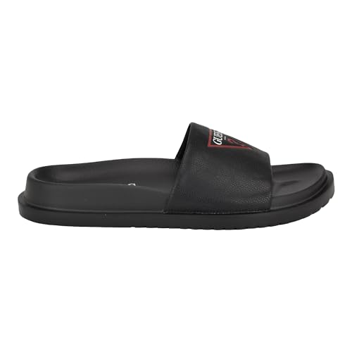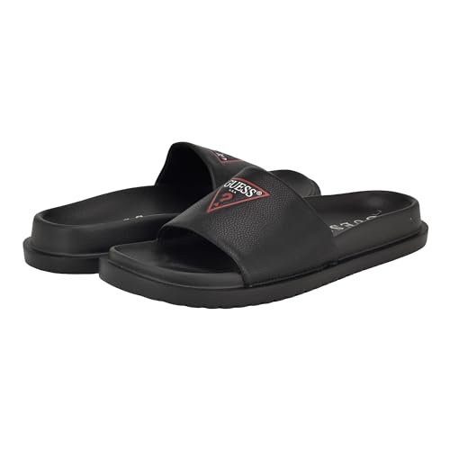 • The GUESS Vumble is an upgraded slide that sits on a slightly lifted sole. The signature GUESS triangle emblem adds an additional appeal. Pair it with your favorite shorts during the warm seasons. Est. 1981, Guess is a global lifestyle brand and a symbol of a young, adventurous lifestyle.