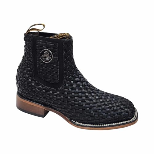 Mens Leather Cowboy Western Hand Woven Braided Square Toe half boots Chelsea Botin Vaquero Petatillo Tejidos 1