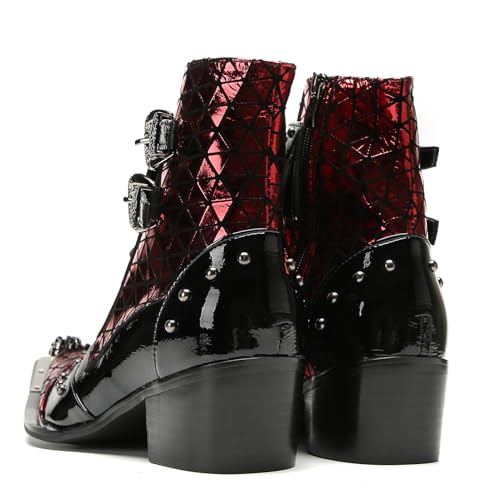 Santimon Men's Gothic Punk Buckle Western Cowboy Boots – Genuine Leather Metal Spiked Toe, Lace-Up Ankle Boots with Buckle & Studs for Club, Party, Stage 7