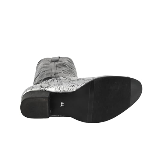 Men's Cowboy Boots Embroidered Pointed-Toe Snake-Textured Ankle Boots Retro Anti-Slip Thick Heel Shoes 5