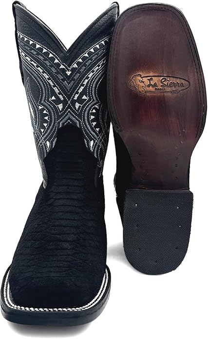 • DESIGN: Men’s Exotic Snake Skin Embossed Western Cowboy Boots | Unique and Striking Exotic Python Design Pattern | Mid Calf | Square Toe