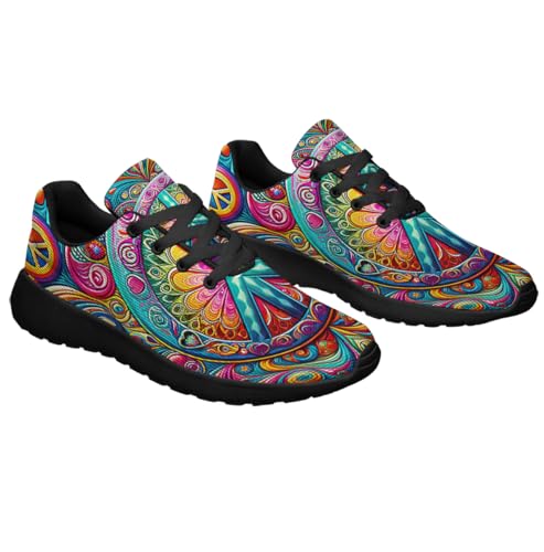 Sonzj-II Peace Hippie Printed Men Women Running Walking Shoes Lightweight Breathable Fashion Sneakers 5