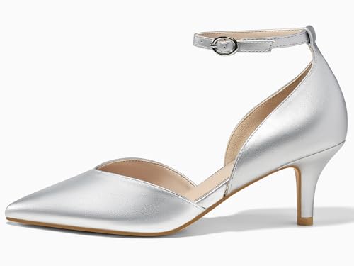 Womens Kitten Heels Comfortable Low Heel Dress Shoes Pointed Toe Ankle Strap Cutout D'Orsay Wedding Party Pumps 1