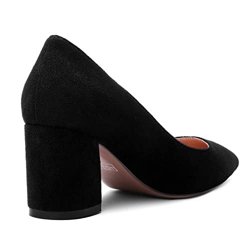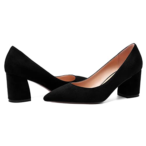 MOVINSTEPS Womens Suede Block Solid Pointed Toe Formal Slip On Office Chunky Mid Heel Pumps Shoes 2.5 Inch 6