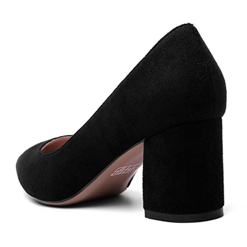 MOVINSTEPS Womens Suede Block Solid Pointed Toe Formal Slip On Office Chunky Mid Heel Pumps Shoes 2.5 Inch 3