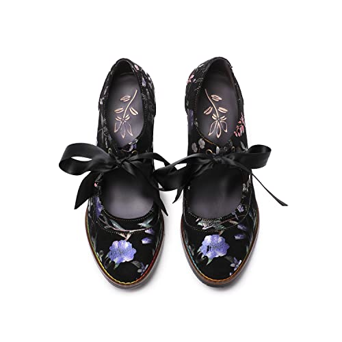 CrazycatZ Leather Mary Jane Shoes with Bow,Womens Patchword Pumps Vintage Mary Jane Shoes 5