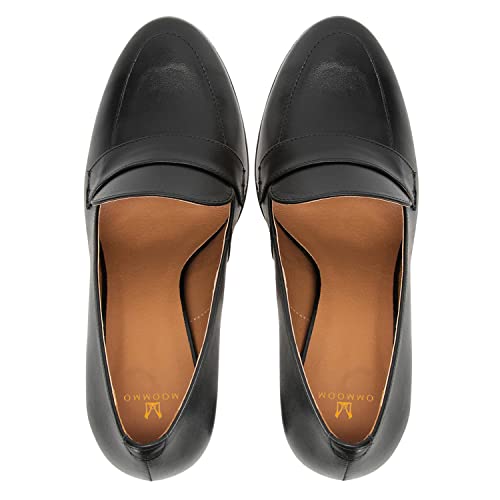 MOOMMO Black High Heels Pumps Round Closed Toe Slip On Dress Loafers Shoes Chunky Block Heel Snake Skin Classic Office Work Pump Matte Leather Ladies Formal Business Wedding Matte Black 8 5