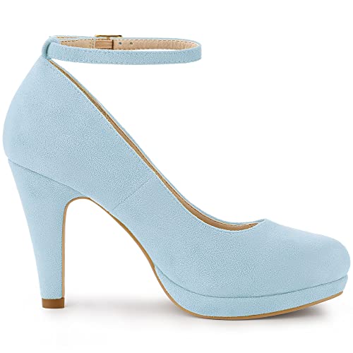 Allegra K Women's Round Toe Stiletto Heels Ankle Strap Sky Blue Pumps - 6 M US 4