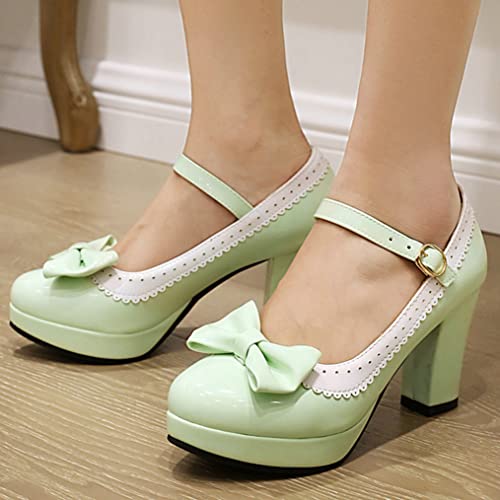 Meefit Womens Wingtip Mary Janes Patent Leather Rockabilly Shoes Platform Bow Block High Heels Vintage Lolita Pumps 5