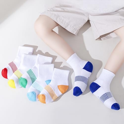 Mini angel Kids Athletic Socks Cushioned Boys Ankle Socks Breathable Mesh Girls Quarter Sock Youth Cotton Sports Sock 6 Pack 7