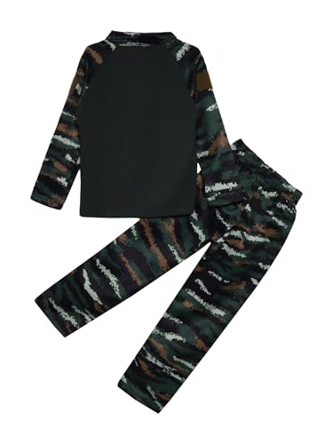 Unisex Kids 2Pcs Tracksuit Camouflage Print Military Training Clothing Sportswear Short Sleeve Top with Pants B Green 13-14 Years 5