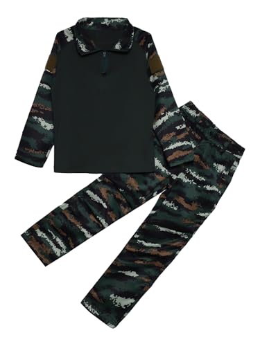Unisex Kids 2Pcs Tracksuit Camouflage Print Military Training Clothing Sportswear Short Sleeve Top with Pants B Green 13-14 Years 6