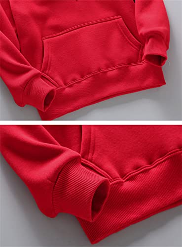 Kids Hooded Pullover Shirt Boys Girls Solid Long Sleeve Thickened Sweatshirt Warm Loose Sweaters with (Red, 8-10 Years) 5