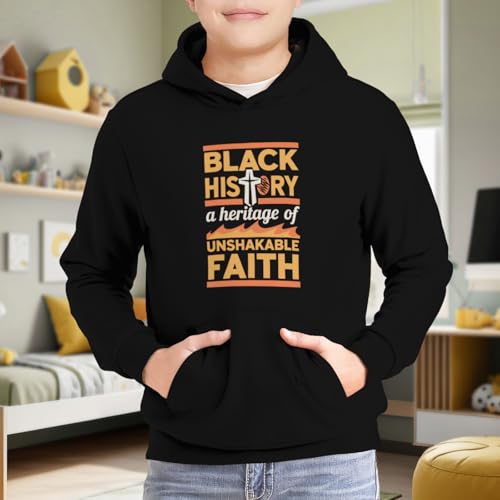 More information about Kids Black History Month Women Men Kids Unshakeable Faith 拷贝 Boys Girls Lightweight Kangaroo Pocket Fleece Hoodies