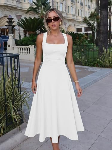 HOT ! Kaximil Women's Square Neck Corset A Line Maxi Dress Ruffle Ruched Waist Flowy Long Dresses