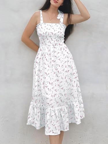 Imily Bela Womens Summer Floral Dress Tie Strap Boho Smocked Ruffle A Line Beach Sun Long Maxi Dresses 1