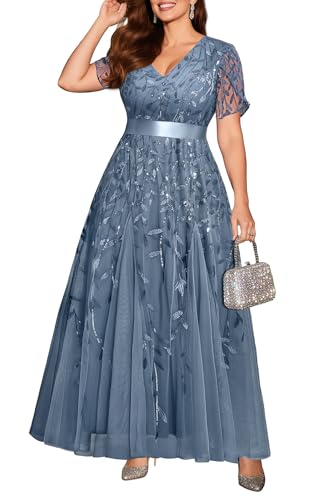 More information about Pinup Fashion Plus Size Formal Dresses - Evening Gowns Wedding Sequin Embroidery V-Neck Prom Long Dress