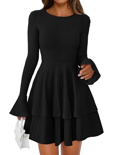 • Features: Bell long sleeve dress for women,fall bodycon dresses for women 2025,long sleeve short dress,crewneck tiered dress women,ruffle dress women,knit dress,a line mini dresses for women,fit and flare dress for women,baby doll dresses women,winter dresses for women 2025