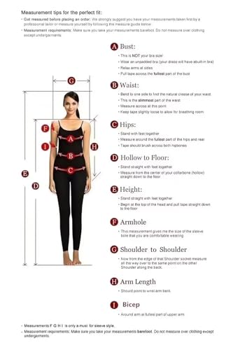 • 【About Size/Color】 Please refer to our own dress size chart on the left before buying. Do not refer to the Amazon size chart.Free customization for sizes and colors(over 40 colors for you to choose).For the best fit,just choose the size closest to your own size and email us the measurements of bust, waist,hips,shoulder to shoulder,hollow to floor,height and shoe height.