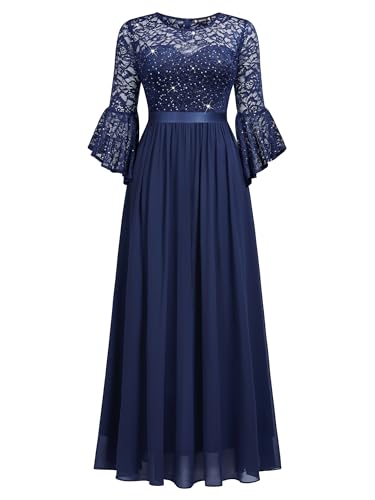 Miusol Women's Formal Sparkle Sequin Lace Bell Sleeve Evening Party Maxi Dress 1