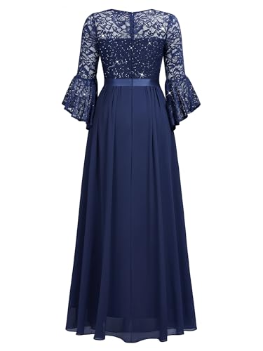 Miusol Women's Formal Sparkle Sequin Lace Bell Sleeve Evening Party Maxi Dress 3