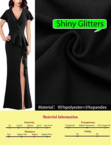 • Style: This sophisticated wrap V neckline dress is guaranteed to make a lasting impression. The ruffle cap sleeves, ruched bust and asymmetrical peplum waist detail help to hide your tummy for a flattering fit. It features a maxi length, a concealed back zipper, front ruffles and a high slit with adjustable zipper allows you to show as much leg as you feel comfortable with.