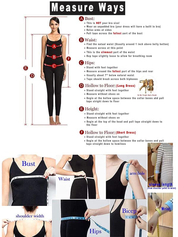 • 🌸【Size】Please refer to the left SIZE CHART before purchasing. If you are not sure what size to choose, we can customize it for you. Please choose the size closest to your own size and email us the measurements of bust, waist, hips and hollow to floor/height, then we custom make this dress for you. There is no extra charge for Custom Service.