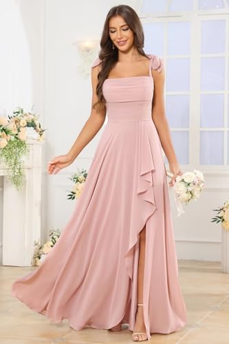 • Features: long flowy bridesmaid dresses for women, with slit,spaghetti straps, square neck, a-line, ruffle, bowknot, chiiffon, pockets, floral, lace up back