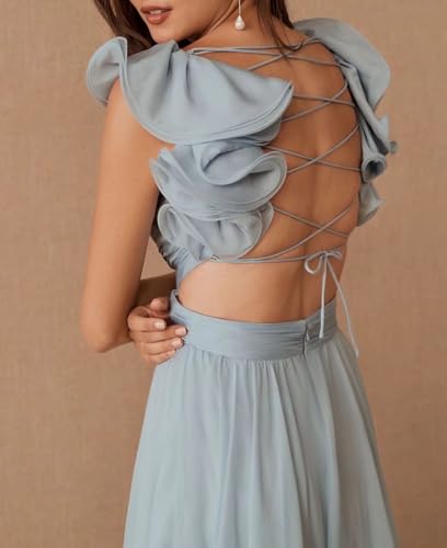 More information about Lawrncedw Chiffon Ruffle Prom Dress for Women V Neck Long Bridesmaid Dresses Backless Formal Evening Gowns A Line