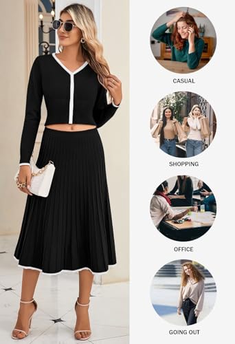 Pink Queen 2 Piece Sets For Women Long Sleeve Crop Top Pleated Skirts Ribbed Knit Matching Set Fall Outfits 6