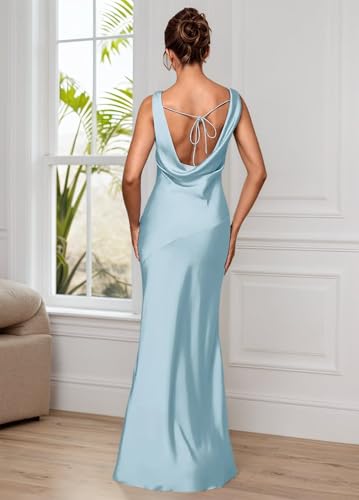 • Stanjiehu Satin Bridesmaid Dresses for Wedding Backless Long Cowl Neck 2025 Formal Evening Party Gown Silk Summer FLOWY Wedding Guest Dress Lace up