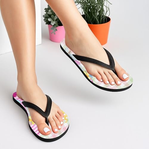 Flip Flops for Unisex Rubber Beach Non Slip Yoga Mat Funny Print Flat Thong Sandals Lightweight Comfy Casual Walking Pool Shower Shoes Waterproof Indoor House Slippers Two-Tone Footwear 4