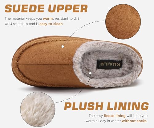 HOT ! KuaiLu Mens Clog Slippers with Arch Support Suede Faux Fur Memory Foam Warm House Shoes Comfortable Slip-on Mans Bedroom Indoor Outdoor Slippers Rubber Sole