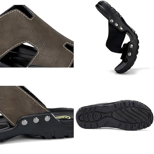 Men's Genuine Leather Slip-On Sandals - Round Toe Summer Casual Slides 7