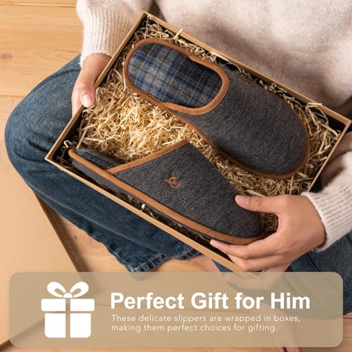 HOT ! VeraCosy Men's Knitted Scottish Slippers with Soft Memory Foam Non Slip Indoor Rubber Sole