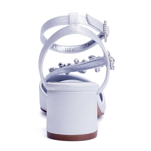 Pointed Toe Strappy Sandals For Women, Closed Toe Low Heel Women Bridal Shoes, Satin Wedding Bridal Court Shoes With Rhinestones 5