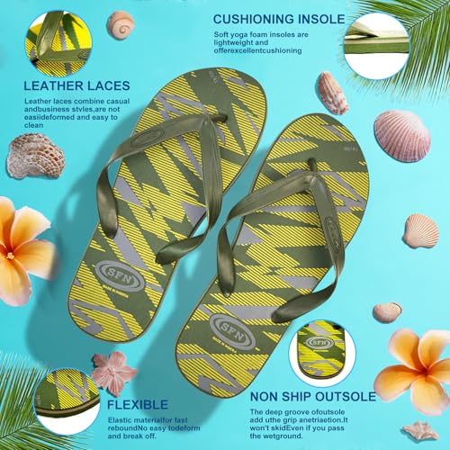 Men's Flip Flops – Quick-Dry, Non-Slip Lightweight Sandals for Beach, Pool, Summer & Outdoor Activities (Dark Green) 6