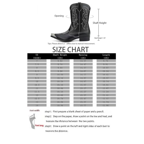 • 【Reliable & Durable】Cowboy boots are made of premium-quality faux leather, ensuring durability and sturdiness. Men's cowboy boots with a non-slip durable sole that provides stability and good grip, always maintaining balance.