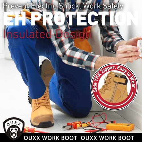 HOT ! OUXX Work Boots for Men, Side Zipper Steel Toe Shoes, Water-Resistant, Non-Slip, Puncture-Proof(OX2720)