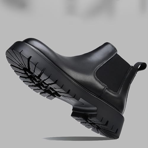 Men's Genuine Leather Chunky Platform Chelsea Dress Boots Luxury Round Toe lug sole Slip-On Outdoor Non Slip Shock Work Ankle Boots 6