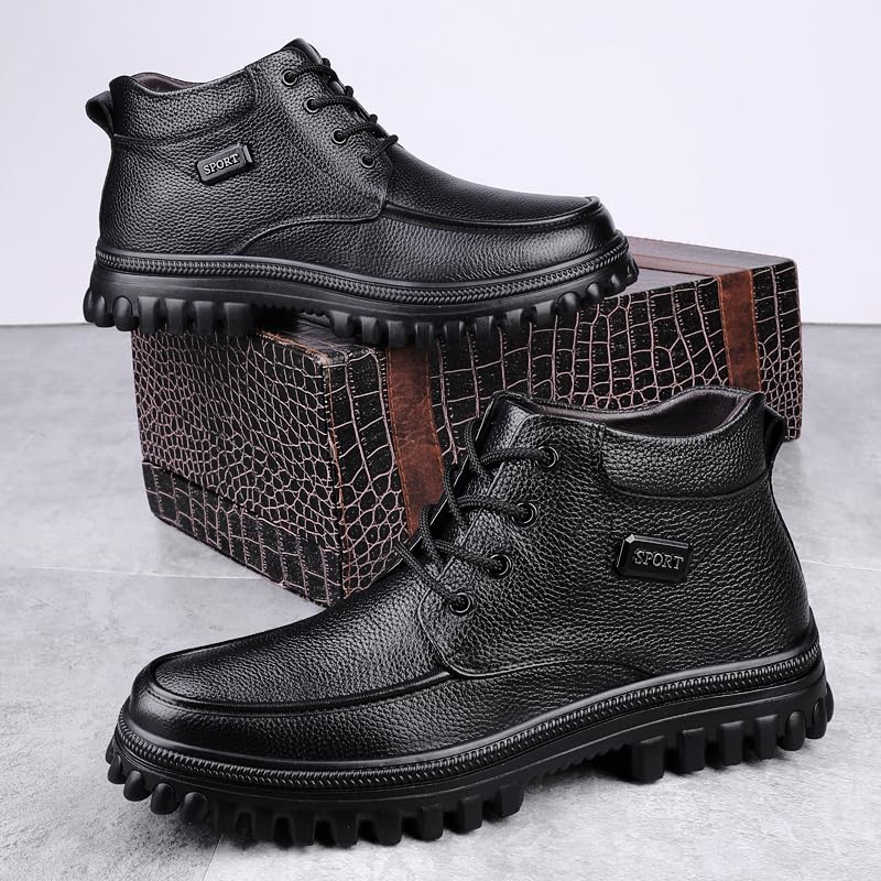 More information about Men's Genuine Leather Ankle Boots, Lace-Up, Black, Big Sizes