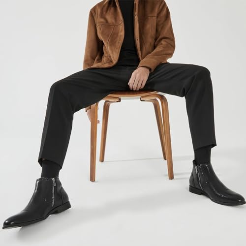 Chelsea Boots Men Dress Boots with Zipper Casual Men's Leather Chelsea Ankle Boots 6