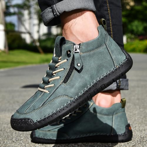 More information about Mens Casual Leather Shoes Ankle Chukka Boots Mid top Handmade Side Zipper Slip On Loafers Lightweight Walking Driving Shoes